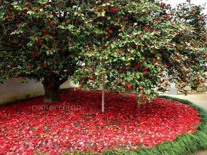 查看更多+冈山县国胜寺一株350岁的八重红山茶,又到一年花落时...